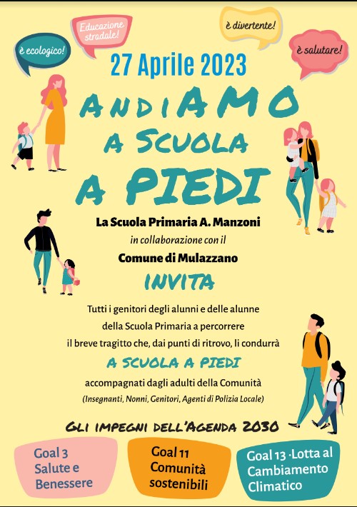 La Scuola PRIMARIA MANZONI di Mulazzano organizza "Andiamo a scuola a piedi" il giorno 27 aprile