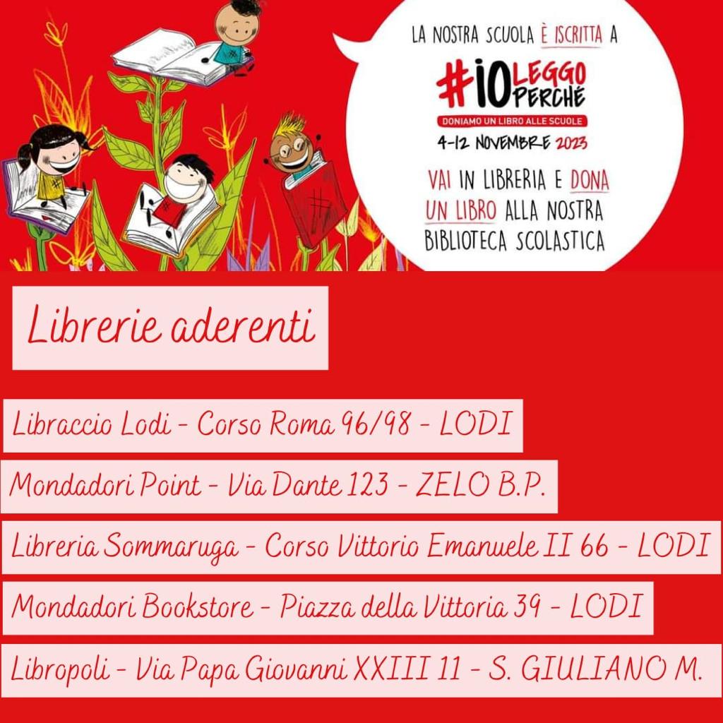 Il nostro Istituto aderisce all'iniziativa IO LEGGO PERCHE' doniamo libri alle scuole dal 4 al 12 novembre 2023.
