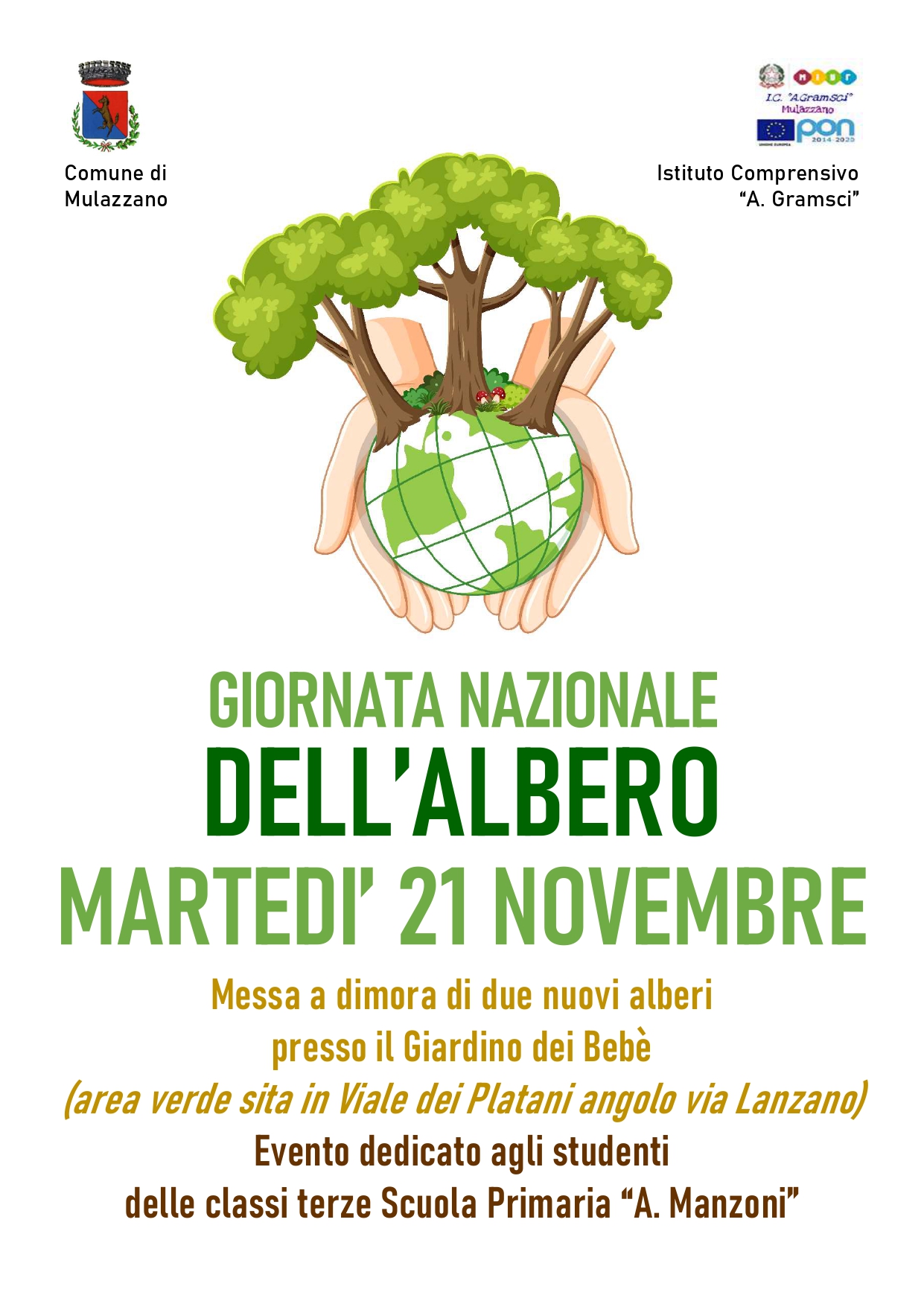 Circolari e comunicazioni Genitori Stampa Condividi Facebook Twitter Whatsapp Telegram Email GIORNATA NAZIONALE DELL'ALBERO Genitori MARTEDI' 21 NOVEMBRE 2023 - EVENTO DEDICATO ALLE CLASSI TERZE SCUOLA PRIMARIA MANZONI
