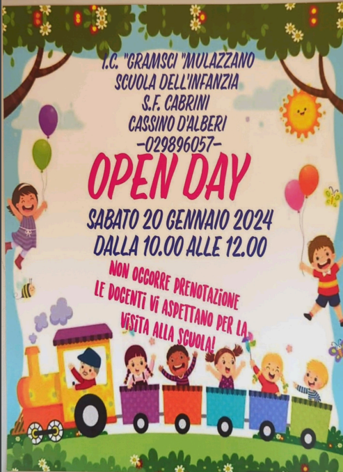Le Docenti della Scuola dell'Infanzia di Cassino d'Alberi vi aspettano SABATO 20 gennaio 2024 dalle 10,00 alle 12,00 per una VISITA ALLA SCUOLA