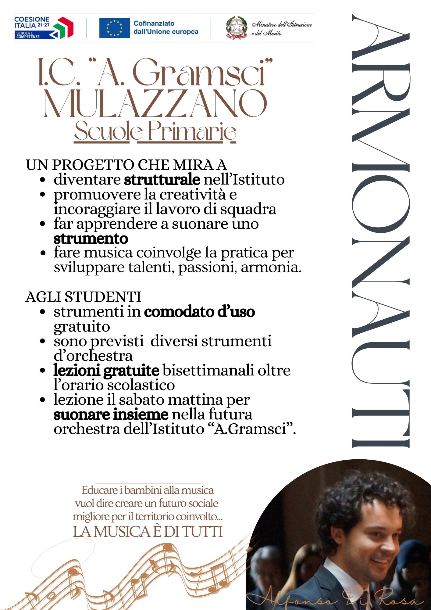 Martedì 26 novembre si terranno le prime lezioni del progetto musicale ARMONAUTI, gratuito per le famiglie, nei plessi delle Scuole Primarie (dalle 16.30 alle 18.00).