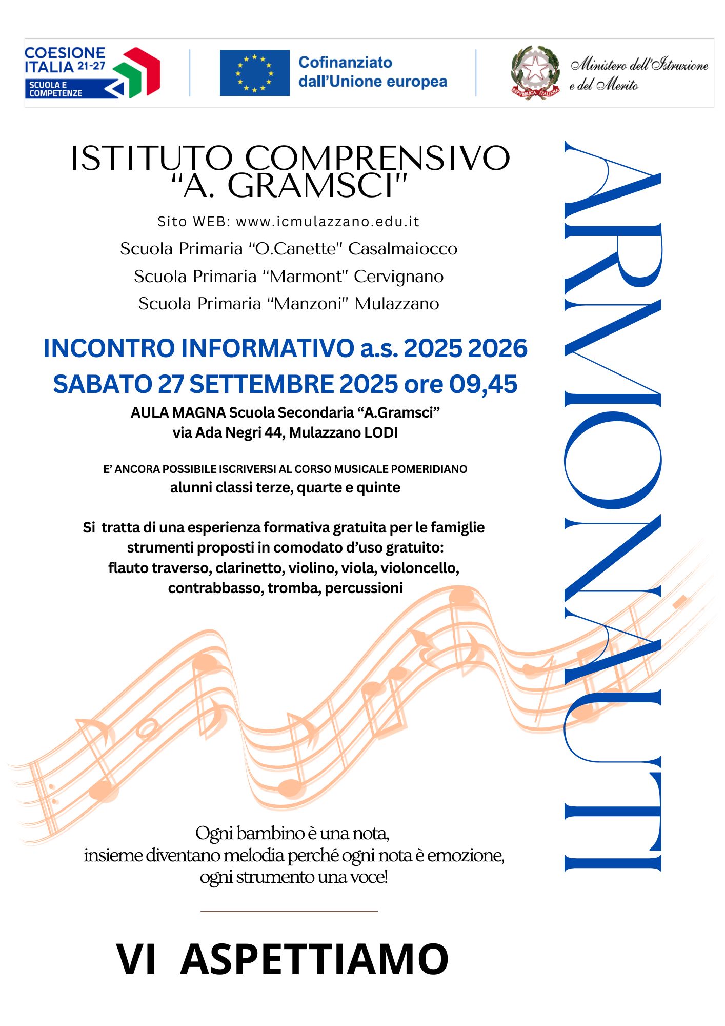 Circolari e comunicazioni Genitori Stampa Condividi Facebook Twitter Whatsapp Telegram Email Circ. 13 - INCONTRO di AVVIO "Armonauti" GenitoriDocenti Attachments: MODULO ISCRIZIONE[Armonauti 2025 2026]320 kB CIRCOLARE 13[AVVISO ALLE FAMIGLIE]198 kB